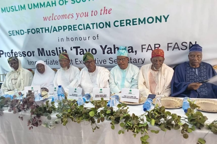 The Muslim Ummah of South West Nigeria (MUSWEN) Saturday organised a sendforth/appreciation ceremony for its immediate past Executive Secretary l, Prof Muslih Tayo Yahya at its expansive Ibadan Secretariat.