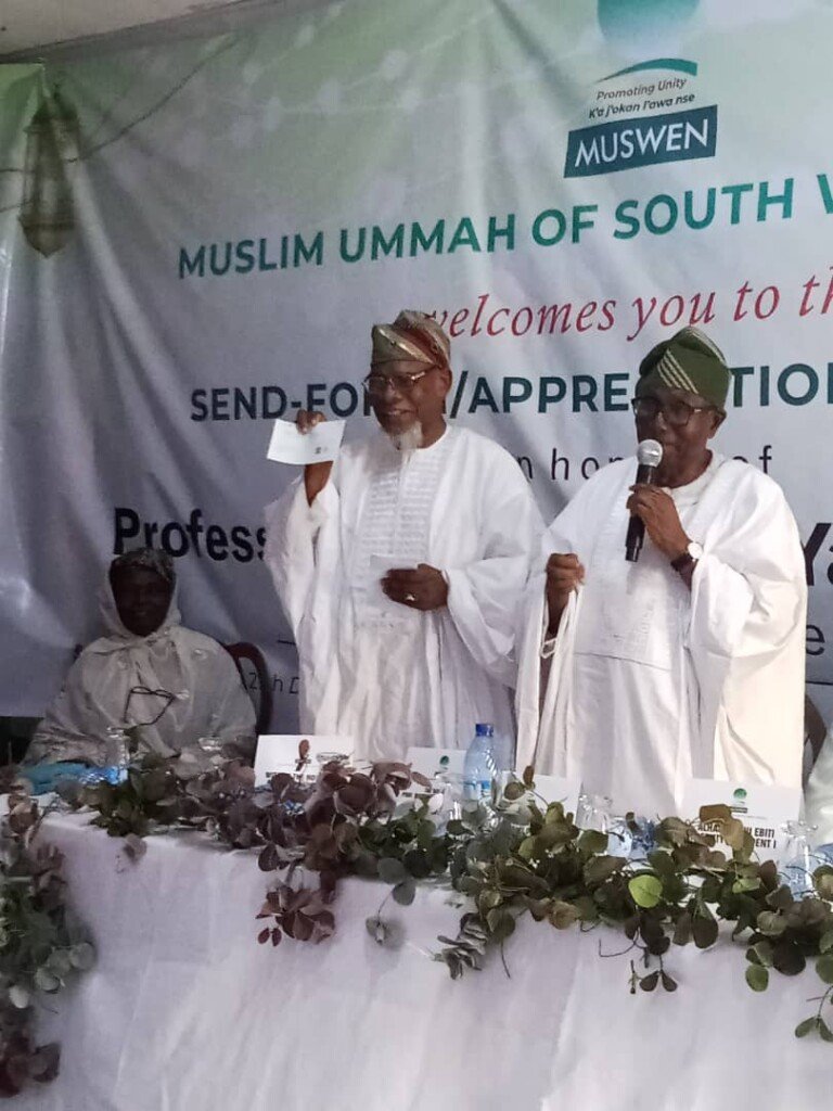The Muslim Ummah of South West Nigeria, MUSWEN, has organised a send-off and appreciation ceremony for its immediate past Executive Secretary, Professor Muslih Tayo Yahya, at its secretariat in Ibadan.
